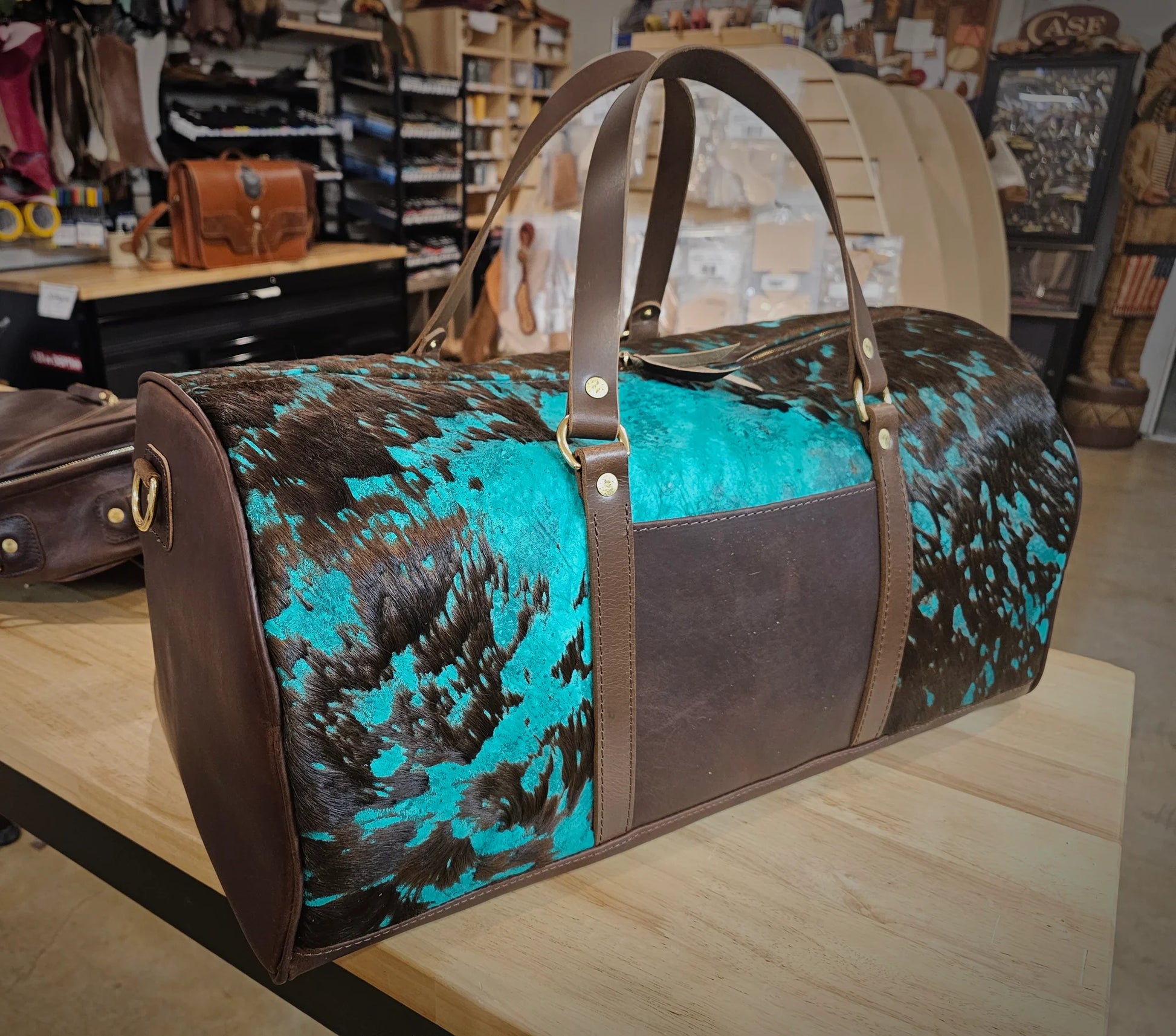 Looking for a duffle bag? Custom order yours today! Pick the color/type of leather, hardware, and thread color to have a bag of your dreams. Photo is an example by Maker's Leather Supply.