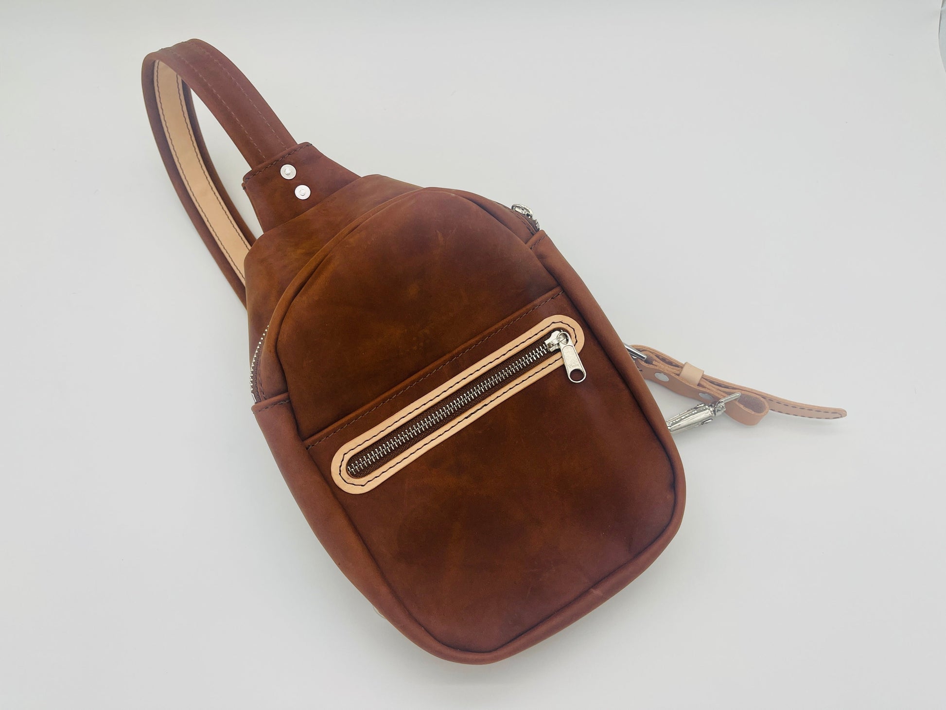 Elevate your style with this handcrafted leather sling bag, designed for those who value both elegance and functionality. Made from high-quality leather, this bag boasts a sleek and minimalist design with a beautifully contrasting front zipper pocket for easy access to your essentials. The adjustable strap ensures a comfortable fit, whether worn over the shoulder or across the chest. Durable hardware and meticulous stitching add a touch of sophistication, making this bag a perfect choice for daily use or travel. Embrace the timeless look and versatility of a bag crafted to age beautifully with every adventure.