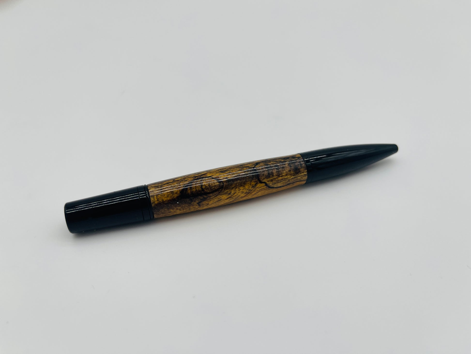 Introducing the Spalted Tamarind pen – a true work of art for those who appreciate the beauty of natural wood. This pen showcases the unique, intricate grain patterns of spalted tamarind, with dark, winding lines that make each piece one-of-a-kind. Paired with sleek black accents, this pen exudes sophistication and elegance. Designed for a smooth, balanced writing experience, it’s perfect for daily use or as a thoughtful gift. Elevate your writing with a pen that embodies both nature’s artistry and refined craftsmanship.